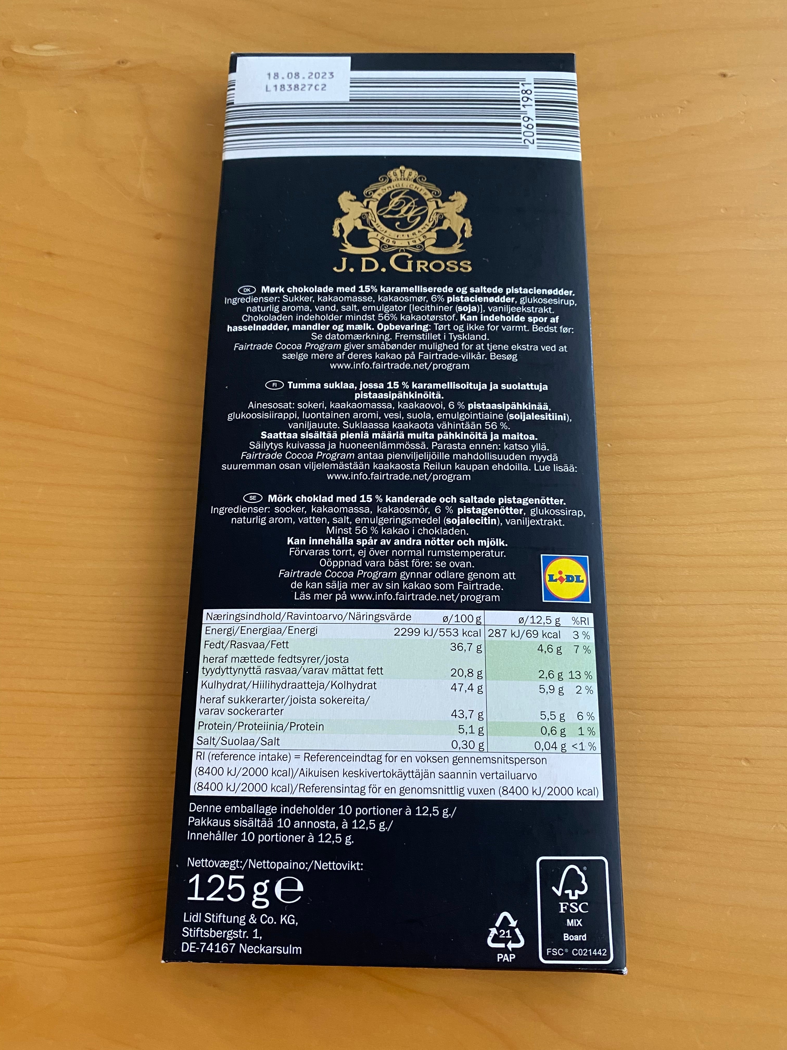 これは、ドイツのものなので、フィンランドのチョコレートとは若干違います。