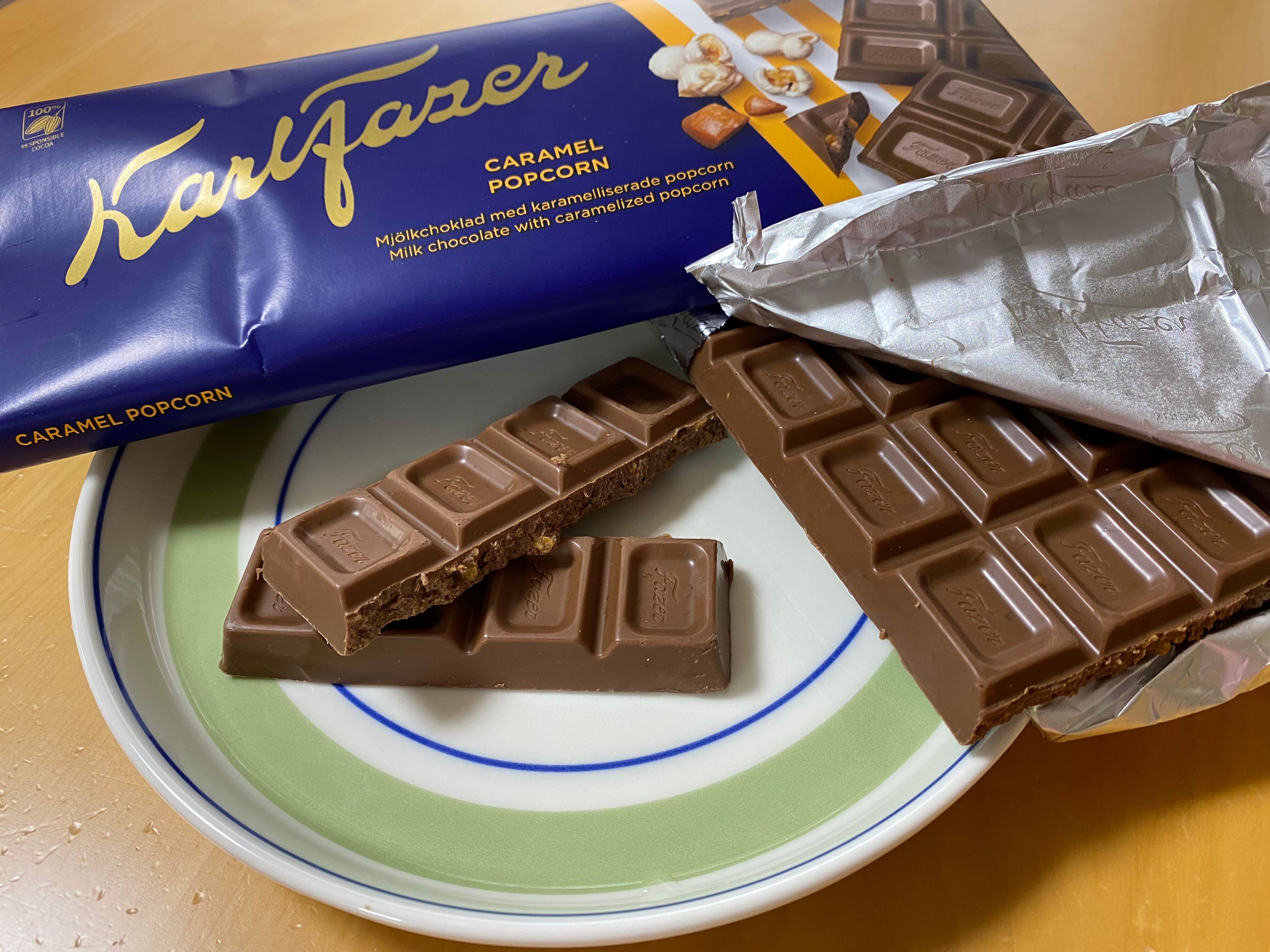 キャラメルポップコーンが入った、ミルクチョコレート(๑>◡<๑)