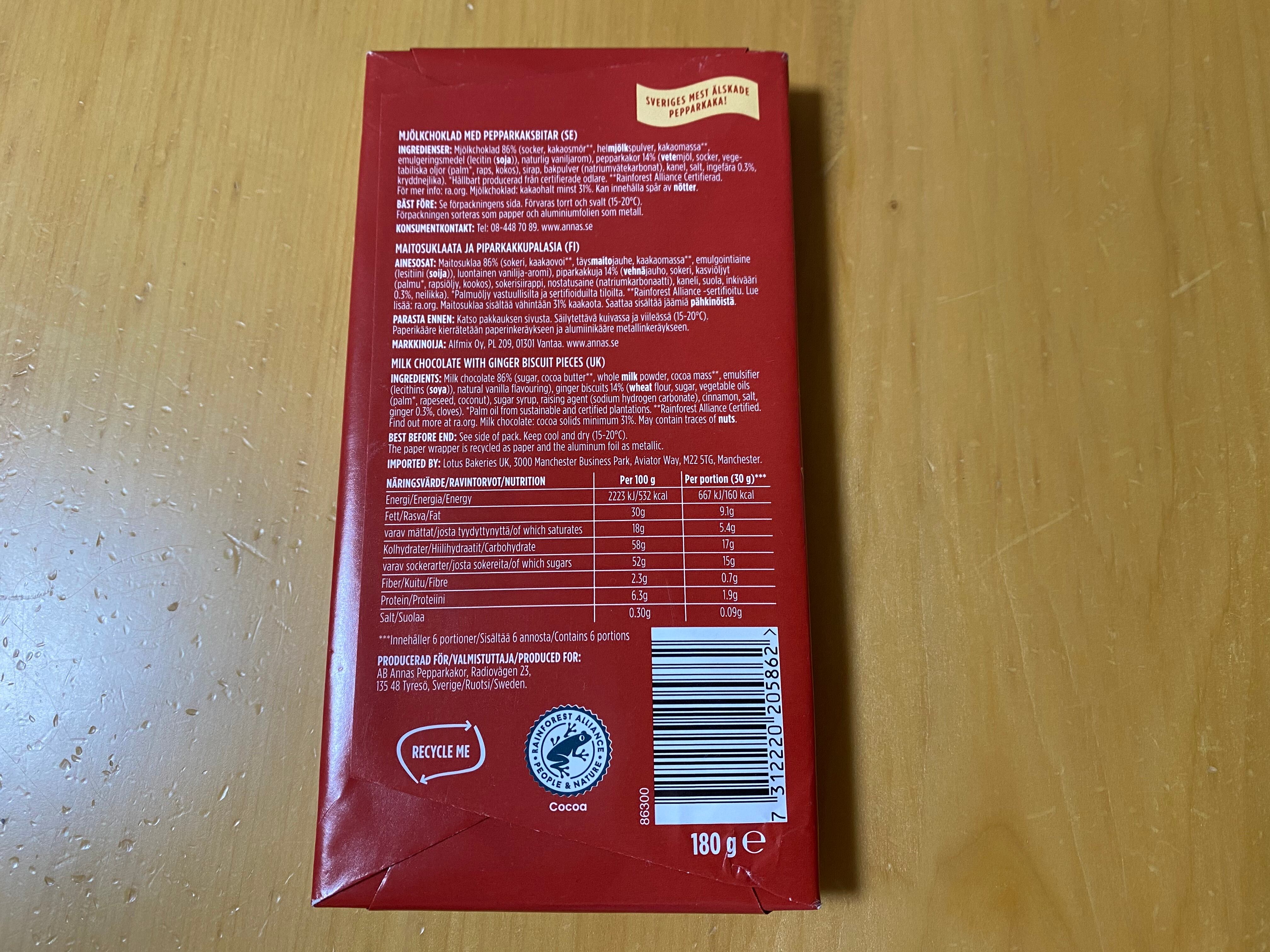アンナス ジンジャークッキー入りチョコレート